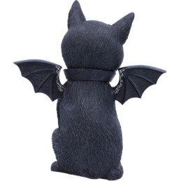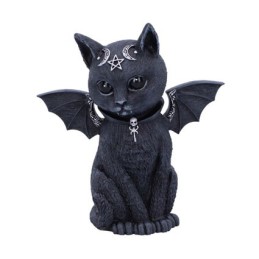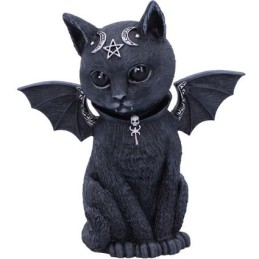 Faszinierende und liebenswerte Figur einer geflügelten Katze. Verziert mit kleinen Totenköpfen, Pentagrammen und Monden.