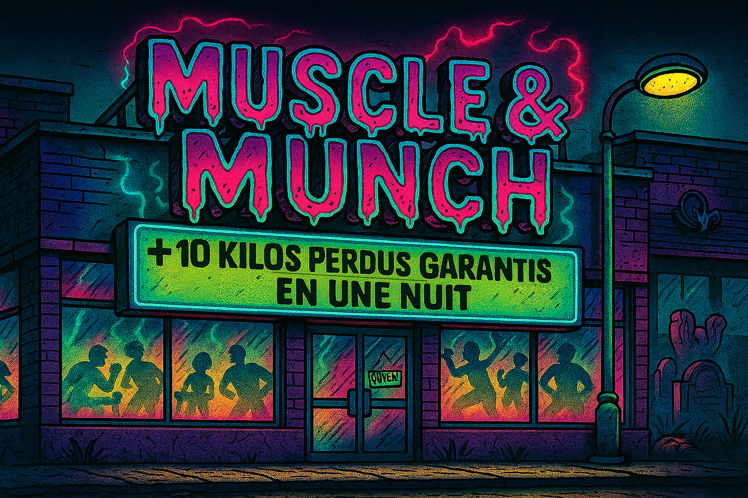 Bienvenue au Muscle & Munch, la salle de sport où tout se perd… sauf les kilos.Dans une ambiance fluo et...